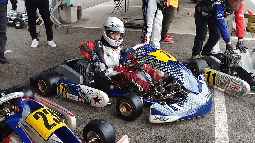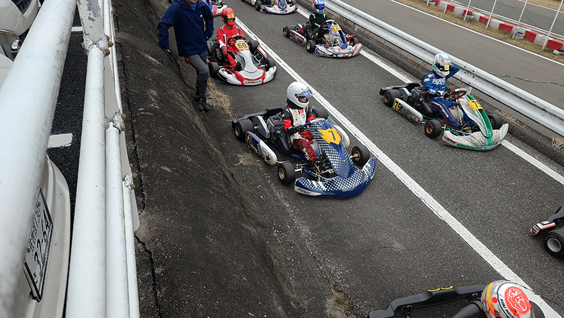 4分間の練習走行で当日は初めてカートに乗りますが、コースインの際にエンストを起こすトラブルが発生。アクセルの踏みすぎによる「プラグかぶり」が原因で、練習時間を2分ほど失うことになってしまいました。